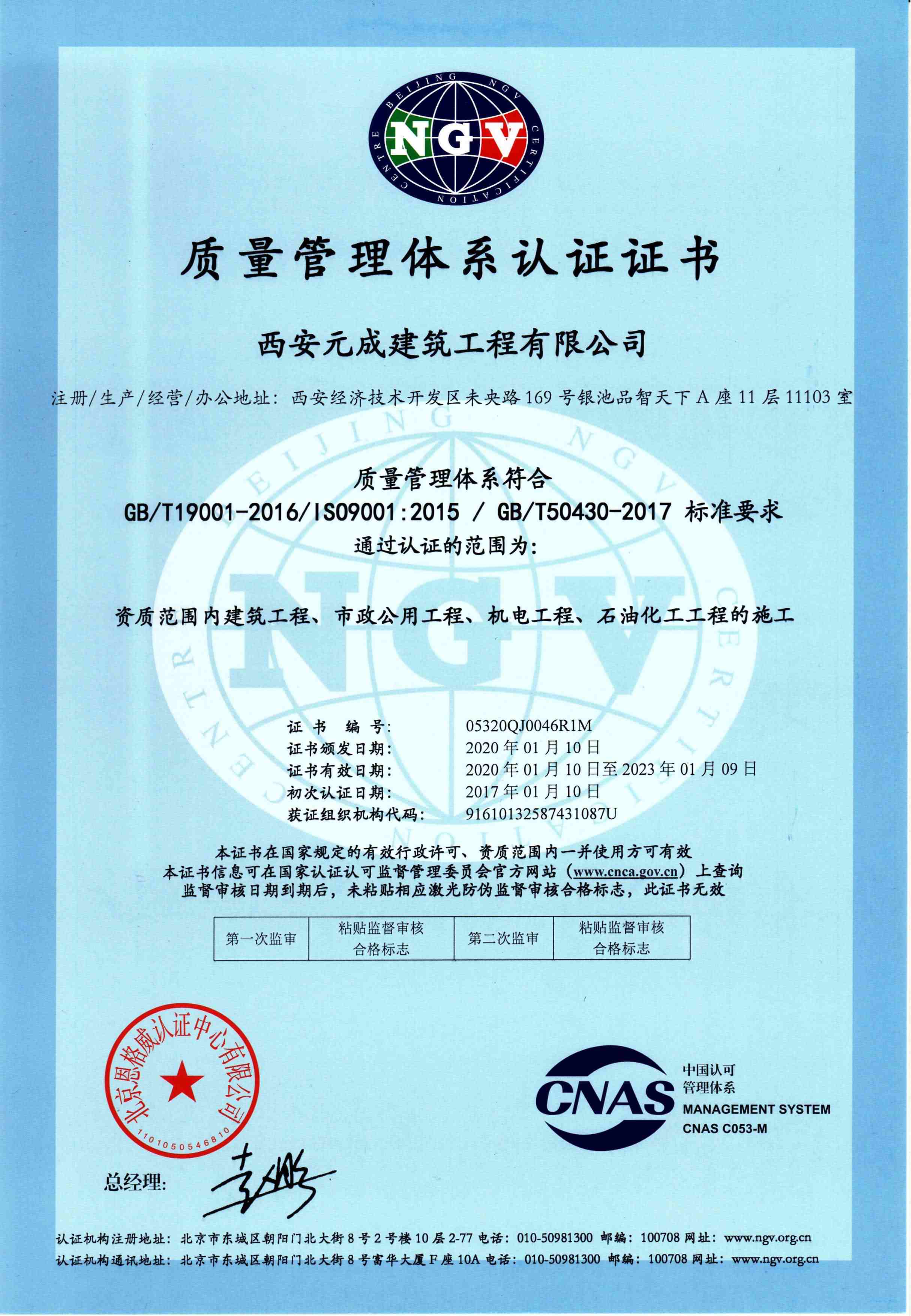 西安元成建筑工程有限公司成立于2012年,是一家擁有建筑工程、市政公用工程、石油化工工程、機(jī)電工程施工總承包貳級(jí);鋼結(jié)構(gòu)工程、防水防腐保溫工程專業(yè)承包貳級(jí);電力工程、水利水電工程施工總承包叁級(jí);建筑機(jī)電安裝工程、輸變電工程、環(huán)保工程專業(yè)承包三級(jí);模板腳手架專業(yè)承包、勞務(wù)分包等綜合性施工企業(yè)。